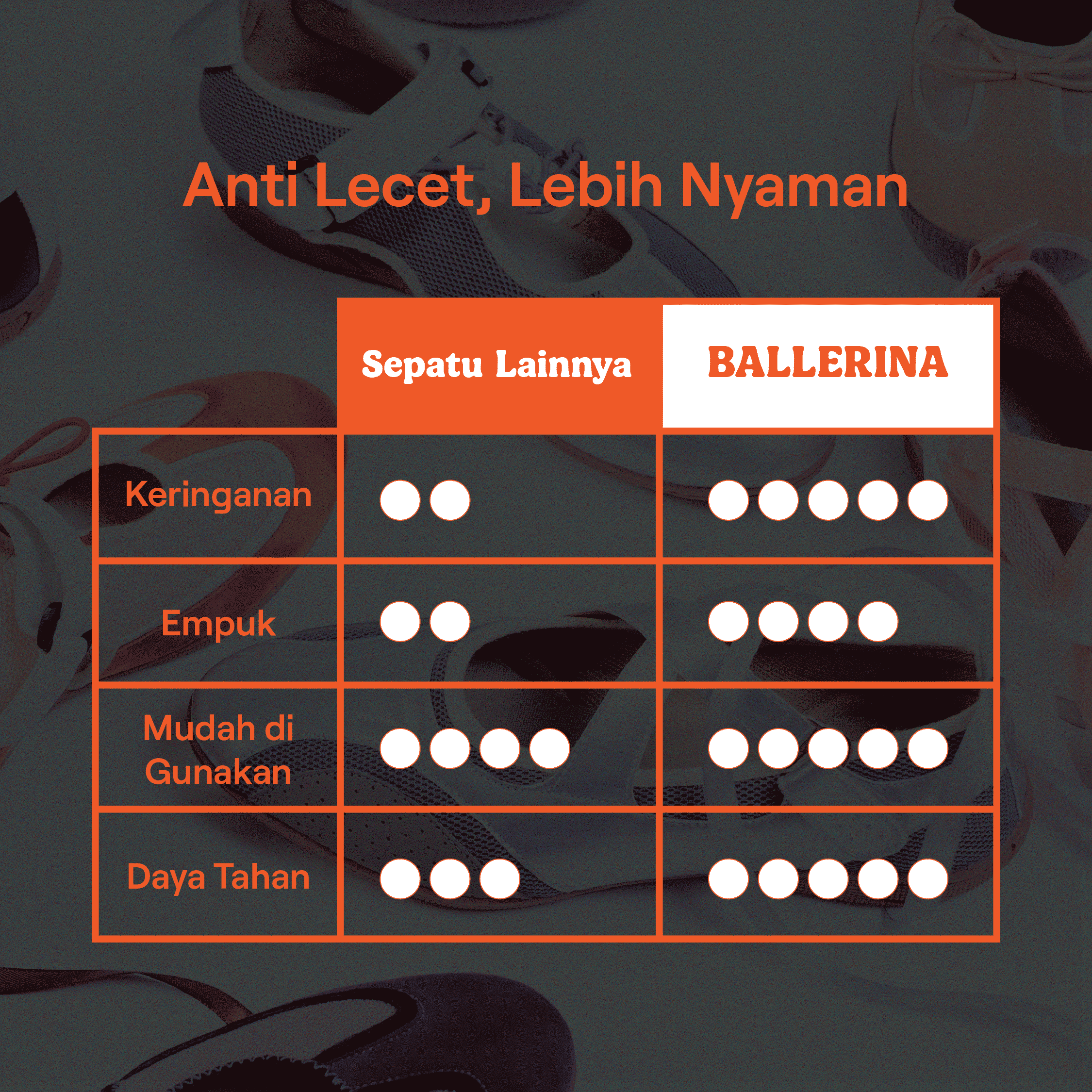 - Insole: Memory Foam (empuk & mengikuti bentuk kaki)